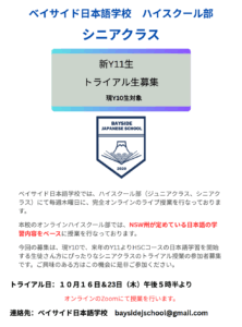 開校の翌年度より、NSW州教育省のコミュニティーランゲージプログラムとしての認可を受け、毎年助成金を頂いております。さらに昨年度からは、日本政府より在外日本語教育施設としての指定を受け、対面の小学部を対象に助成金を受けられるようになりました。